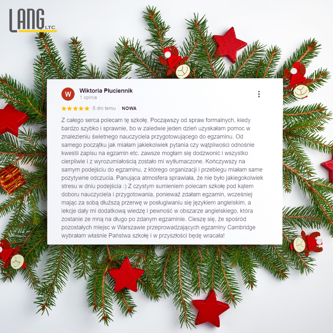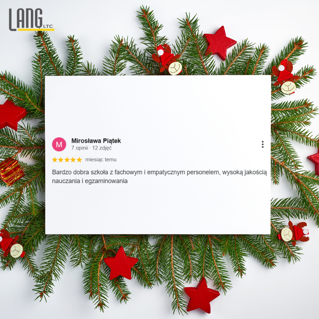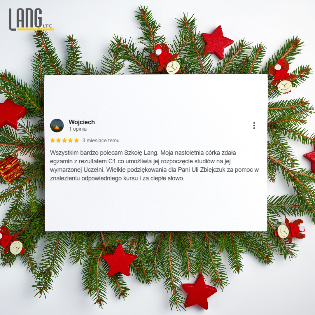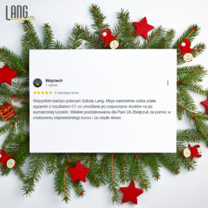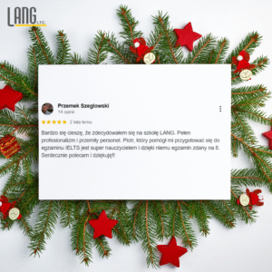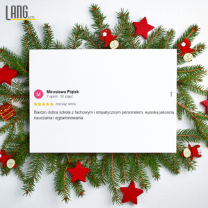 Pakiety ze świąteczną obniżką można zakupić do 31 stycznia 2026. Certyfikat otrzymasz w 2026 roku po zaliczeniu egzaminu w Oficjalnym Centrum Egzaminacyjnym Lang LTC.